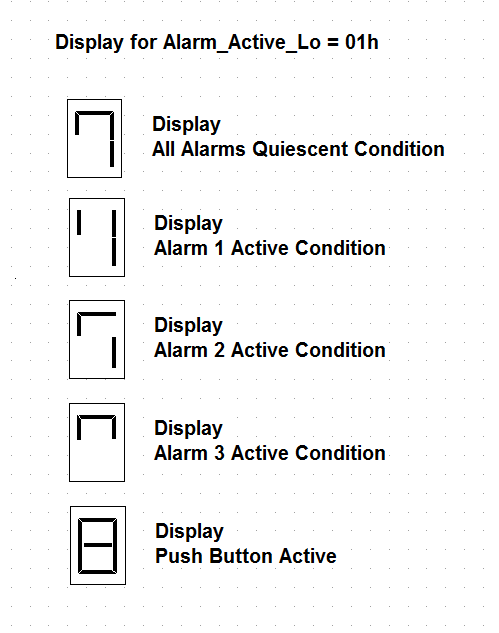 checked on the 8 segment display. If the Alarm_Active_Lo is set to 01h then the
